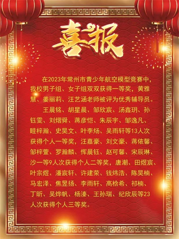 近日,2023年常州市青少年航空模型竞赛落下帷幕,我校小学部参赛队凭借拼搏奋进的团队精神、扎实稳健的技术实力,获得男子组、女子组双项团体一等奖的优异成绩。