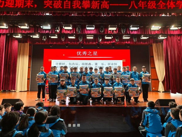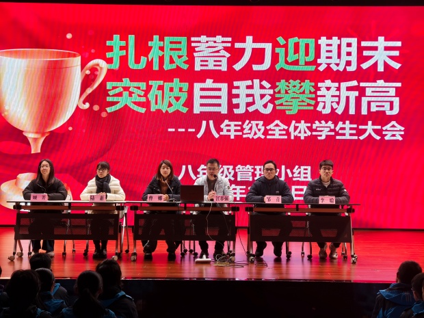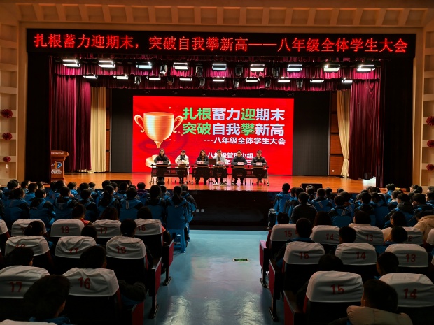 扎根蓄力迎期末,突破自我攀新高。此次八年级学生大会的圆满举行,不仅表彰了优秀学生和班级,还通过一系列激励环节激发了全体学生的学习热情。相信在全体师生、家长的共同努力下,同学们定能取得优异成绩!