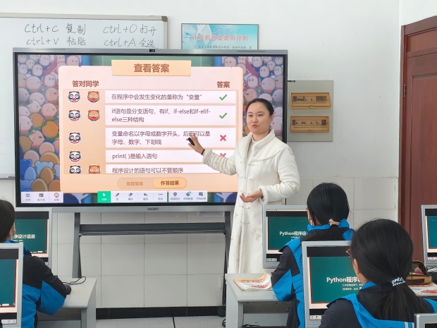 中天实验学校赵安老师执教《Python基本结构语句(2)》一课。本课聚焦Python循环结构教学,亮点突出。以任务驱动为核心,将range函数、for/while循环等抽象语法转化为“闯关挑战”等实操任务,贴合学生认知特点,有效降低编程学习的难度。教学环节层层递进,从语法讲解到代码实操再到优化引导,逻辑清晰且注重模块化思想的渗透。课堂融入游戏化设计,充分激发学生的编程兴趣与参与热情,同时通过即时性的课堂互动与反馈,及时把握学生学习状态,是一节兼具知识性与趣味性的优质信息科技课。