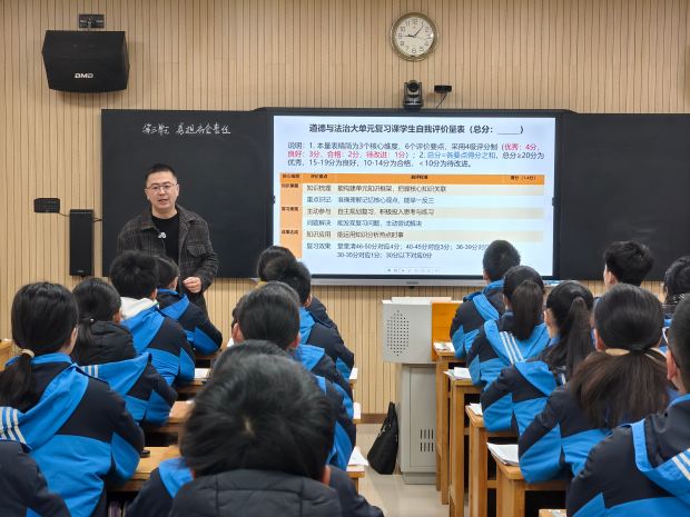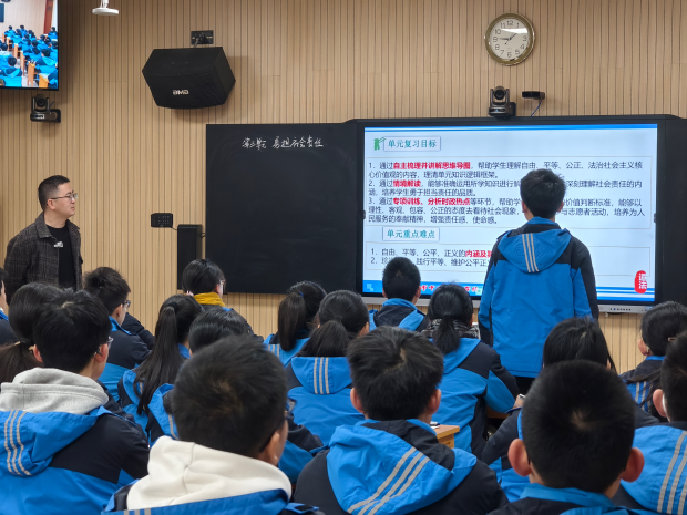 在情境运用方面,江老师展现了极高的创新性。他巧妙地将热点事件与考点相结合,引导学生利用习主席2026年元旦贺词中的平等、公平、正义和负责任等知识点,自主命制原创试题。这一环节不仅激发了学生的学习兴趣,还有效提升了他们的知识应用能力。
