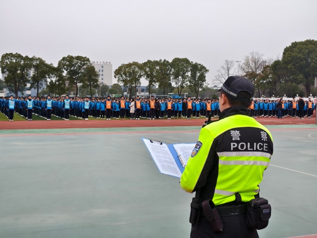 为深化校园交通安全教育,增强师生安全出行意识,3月5日上午,常州市中天实验学校利用升旗仪式后的国旗下讲话时间,特邀奔牛交警中队高队长开展“安全出行,从‘头’做起”主题宣讲。活动聚焦机动车安全带使用、电瓶车头盔佩戴等核心内容,通过权威讲解、互动示范等形式,为全校师生上了一堂生动的安全教育课。